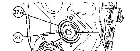 26. Apply Tooling (J) to flange (7). Apply Tooling (M) to bolts (6). Position flange (7). Install bolts (6). Tighten bolt (37) to a torque of 50 N路m (37 lb ft).