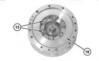 21. Install washer (15) and bolt (16). Tighten bolt (16) to a torque of 139 N路m (103 lb ft). Remove washer (15) and bolt (16).