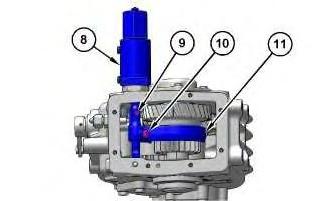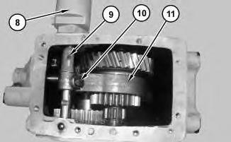 6. Remove bolt (9) and the bushing. Remove bolt (10). Remove shift cylinder (8). Remove fork (11).