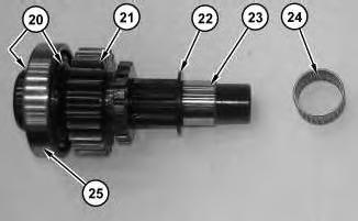 19. Install bearing (25). Install retaining rings (20). Install gear (21). Install washer (22). Install bearing race (23). Install needle bearing (24).