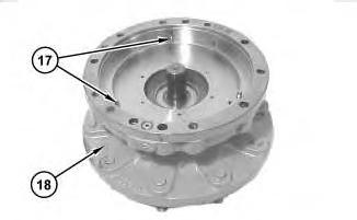 12. Remove three pins (17) from the brake housing (18).