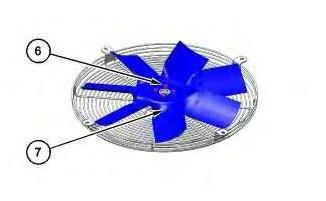 7. Install fan (7) and four bolts (6).