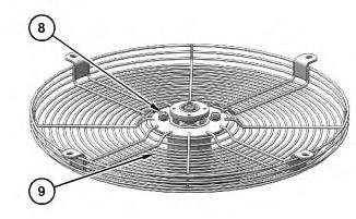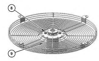 6. Install fan guard (9) and bolts (8).