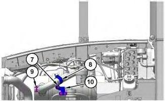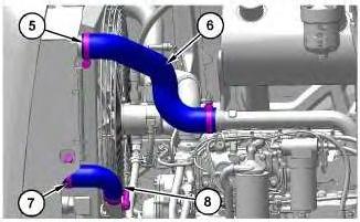 3. Remove clamps (5) and hose (6). Remove clamps (7) and hose (8).