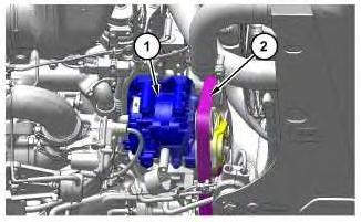 3. Remove belt (2) from alternator (1). Refer to Operation and Maintenance Manual, "BeltsInspect/Adjust/Replace" for the correct procedure.
