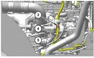 c. Tighten clamp for air intake tube (3) to a torque of 5 ± 0.5 N·m (44 ± 4.0 lb in).