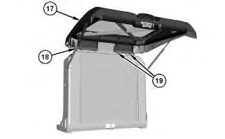 2. Position rear door (17) and install bolts (19). Tighten bolts (19) to a torque of 15 ± 3 N·m (133 ± 27 lb in). Connect strut assemblies (18).