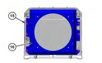 3. Install fan shroud (16) and six bolts (15).