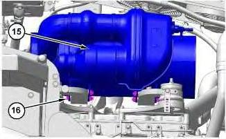 8. Remove four bolts (16) and Catalyst (SCR) (15).