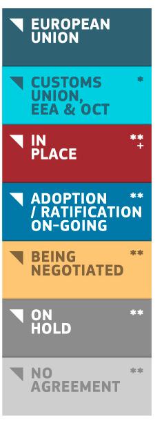 + The updated agreements with Tunisia, and Eastern and Southern Africa are currently being updated; the updated agreement with Chile is under ratification. The DCFTA with Georgia does not apply in South Ossetia and Abkhazia.