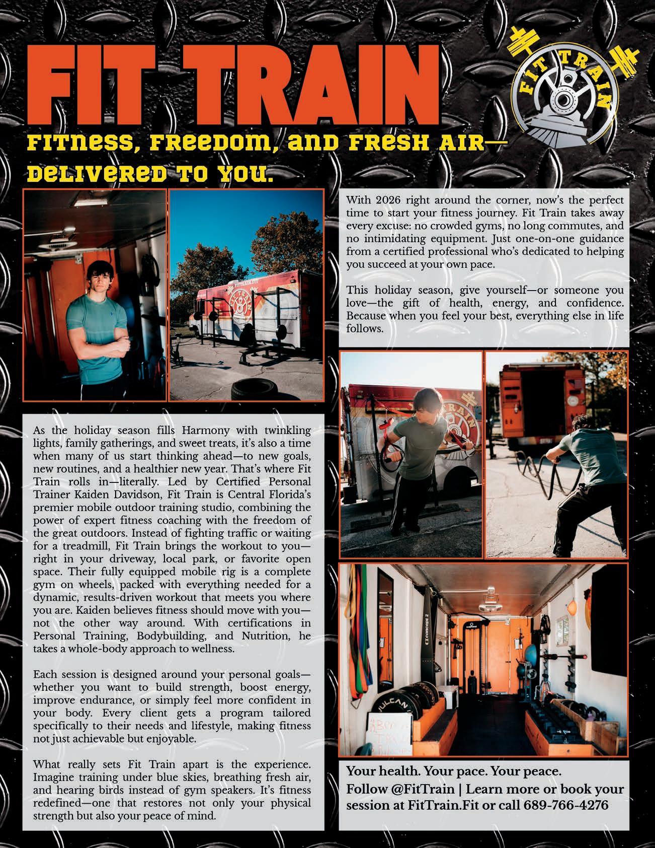 • Fit Train – Helping Harmony residents stay strong, healthy, and energized! Fit Train offers personalized fitness programs and expert coaching to help you meet your goals — the perfect way to kick off a healthy new year.