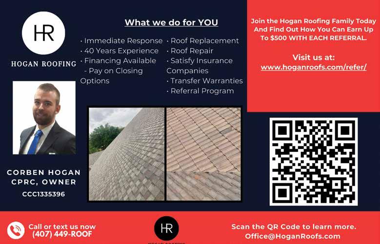 Hogan Roofing Corben Hogan 407-449-ROOF Office@HoganRoofs.com www.HoganRoofs.com/Refer