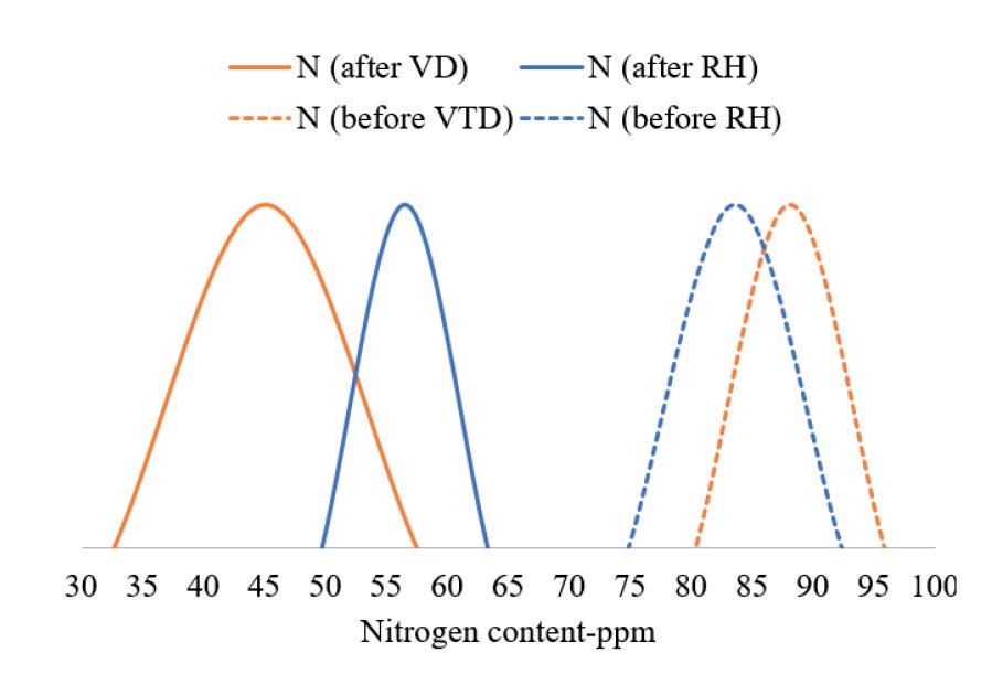 Nitrogen content before tapping from the EAF could be in the range of 25÷100 ppm. Based on the ability to refine steel during the secondary metallurgy process (nitrogen, hydrogen, and sulphur pattern), and based on the type of EAF chosen, a proper charge mix must be evaluated for each grade of steel.