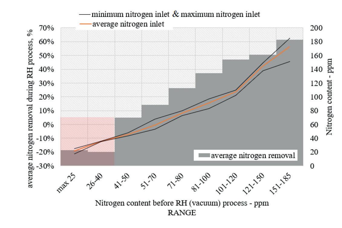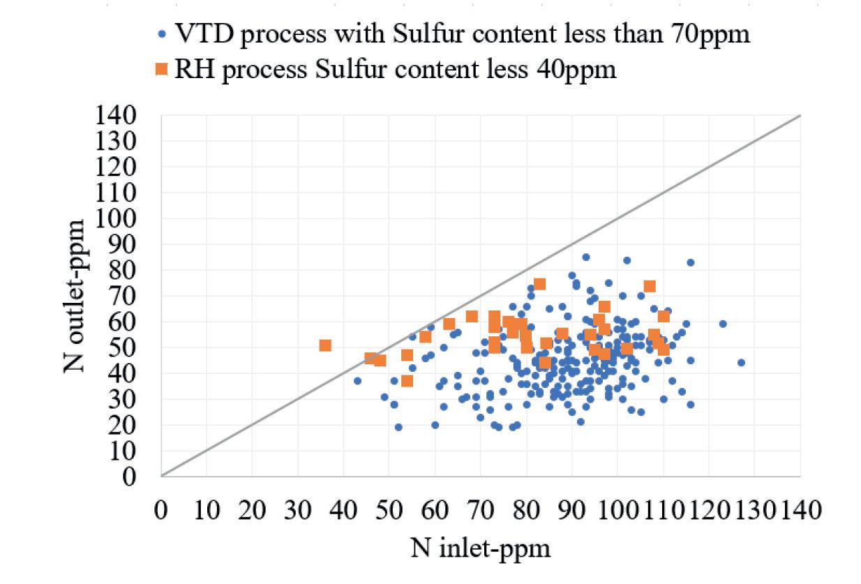 The difficulty for secondary metallurgy processes to remove nitrogen (example: RH vs. VTD) consequently makes it necessary to reduce nitrogen contents before tapping from the EAF. This is possible by increasing the amount of DRI in the EAF charge mix.