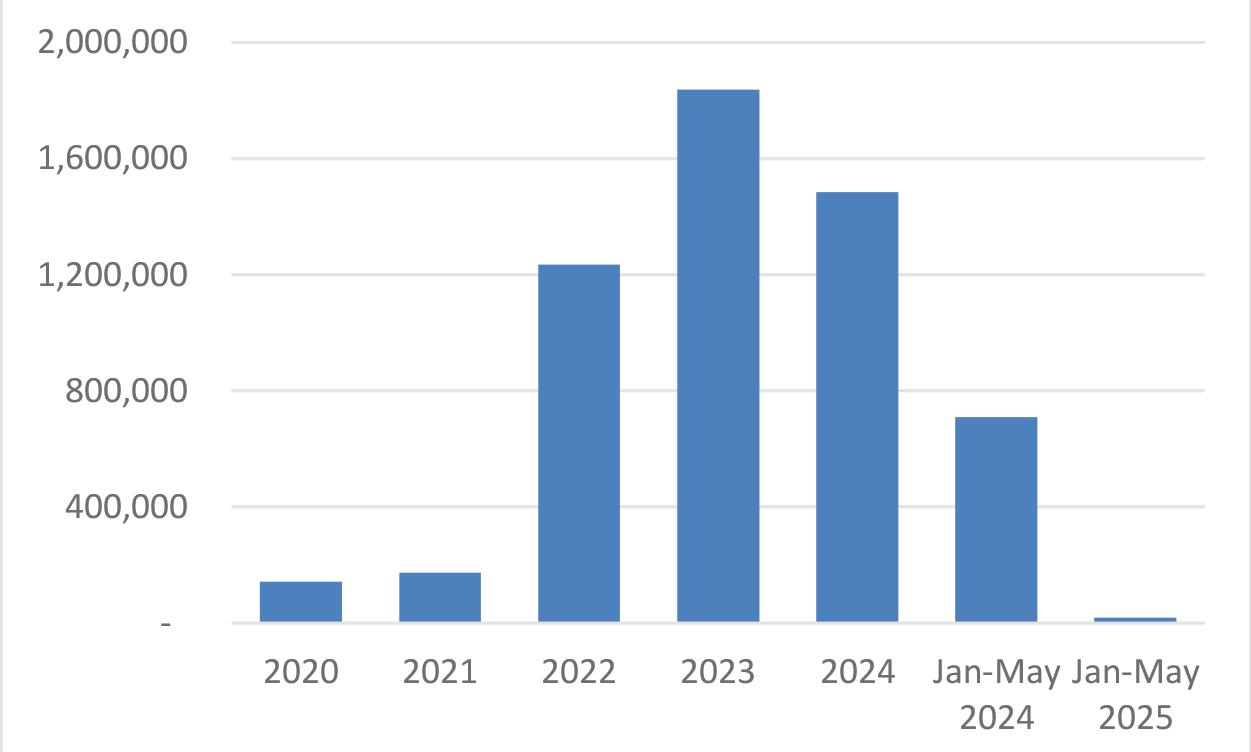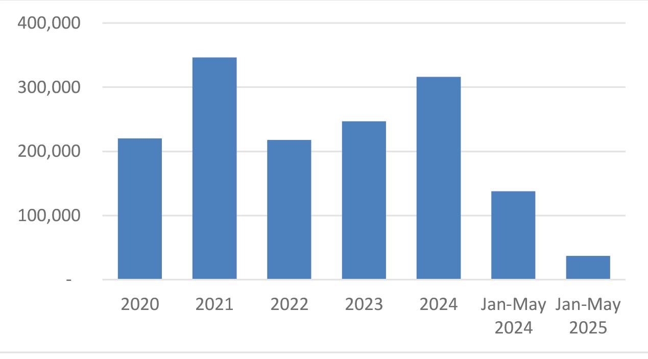 Most of the country’s record soyabean oil exports were shipped to India in the form of crude soyabean oil, due to India’s tariffs on refined oil. Additionally, substantial volumes of refined soyabean oil were exported to South Korea.