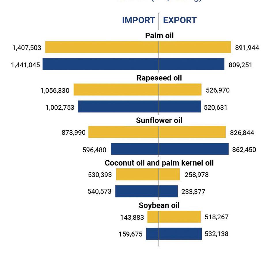 The Netherlands acts as a gateway for imported oilseeds, oils and fats into Europe, with a strong infrastructure for storage, refining and exports