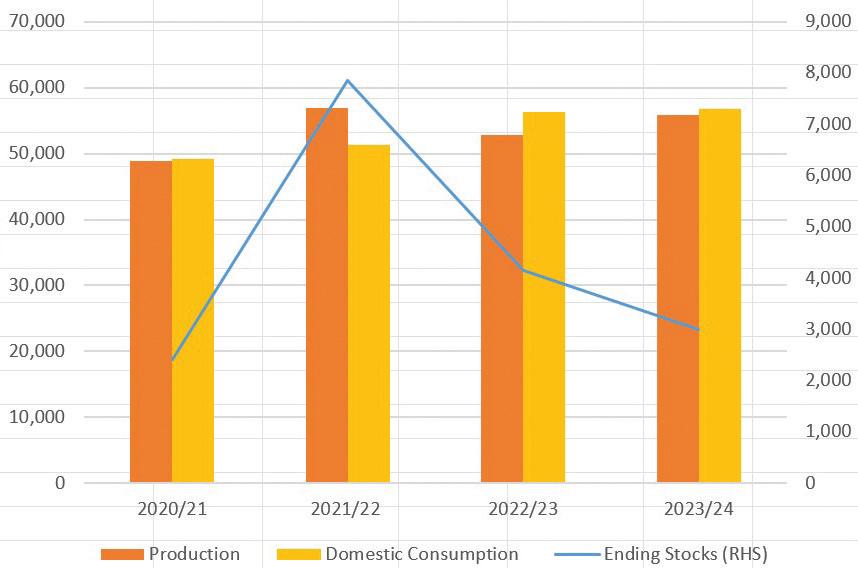 Production was expected to drop by 1M tonnes to 53.8M tonnes in 2024 as last year’s dry weather had lowered yields, he added.