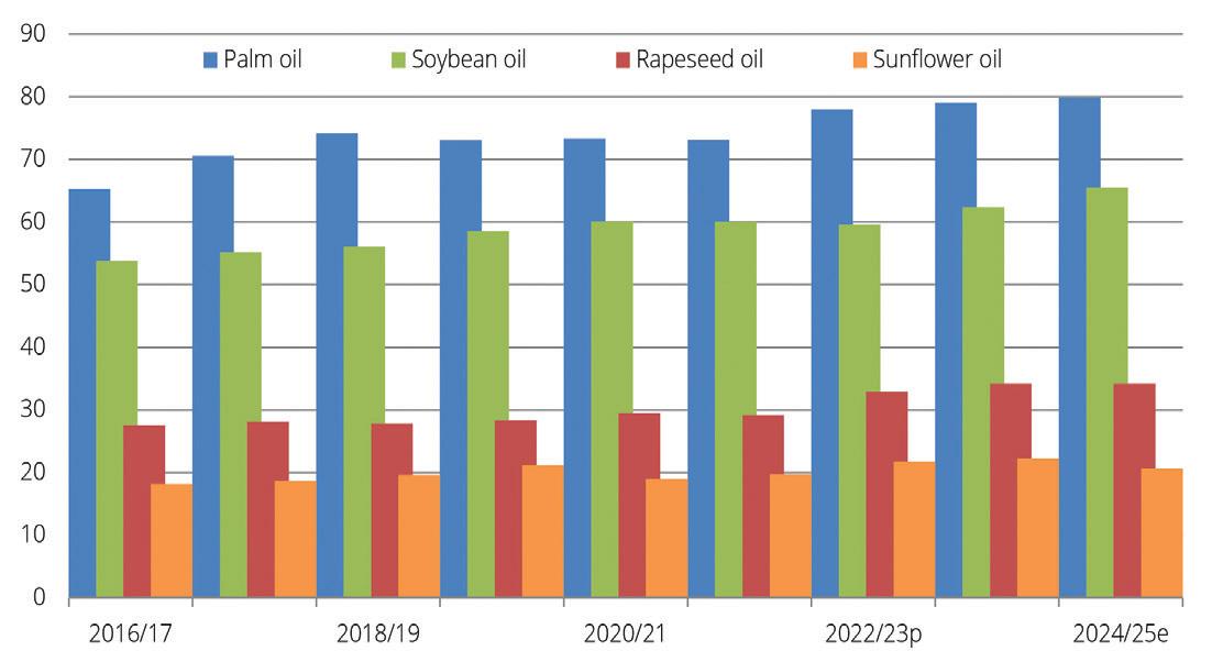 However, the USDA expects sunflower oil production to plummet in 2024/25, especially due to a more than 1M tonne decline in production in Ukraine.