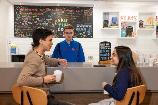 The Coffee Bar serves free tea and coffee throughout the day and every evening. It is a great space to meet up with friends and get to know your Residential Assistant (RA). During student holidays and the summer hours will differ, with times being displayed in the Treehouse.