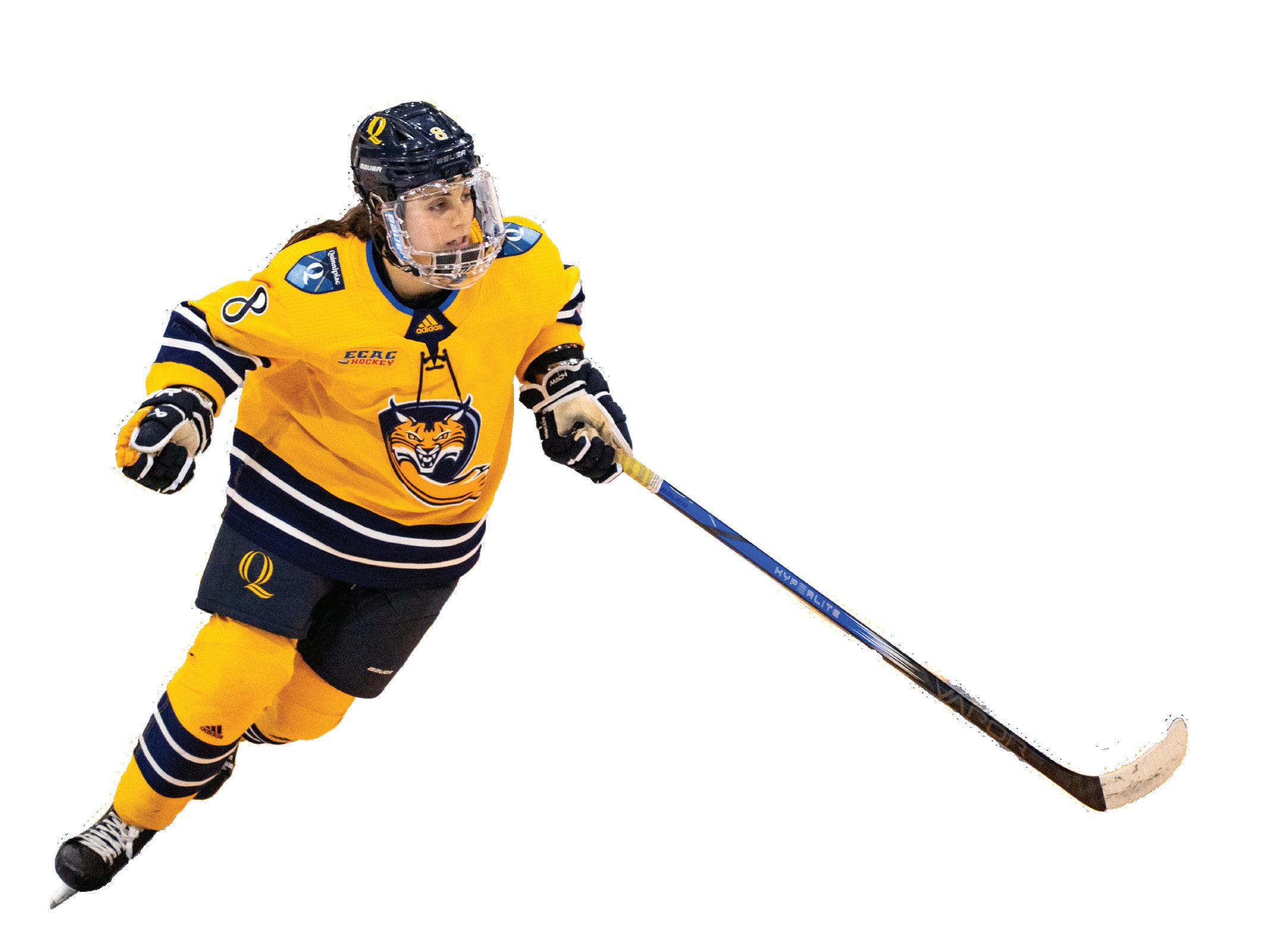 If she was to be drafted, she would join a prestigious list of 14 Bobcats who’ve gone pro. Most recently, goaltender Kaley Doyle ’25, forward and defensemen Maddy Samoskevich ‘25, forward Maya Labad ‘25 and defensemen Kendall Cooper ’25 were the latest Bobcats to achieve their profes-