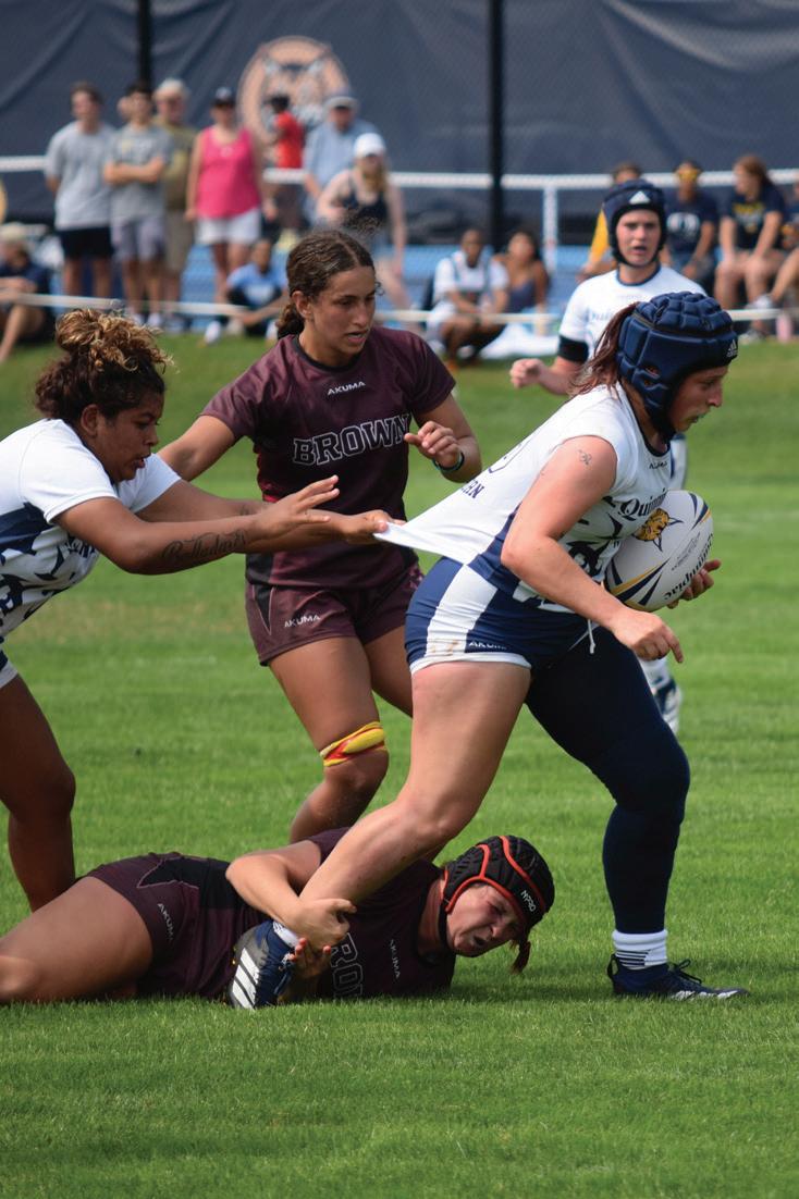 Senior hooker Lucy Lamborn attempts to escape tackle from Brown defense on Sept. 6.