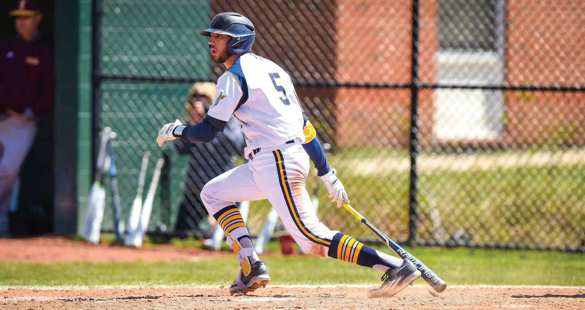 Sophomore Finn Burridge celebrates in a 4-3 victory against LIU March 23.