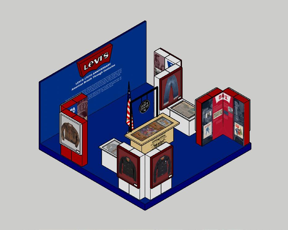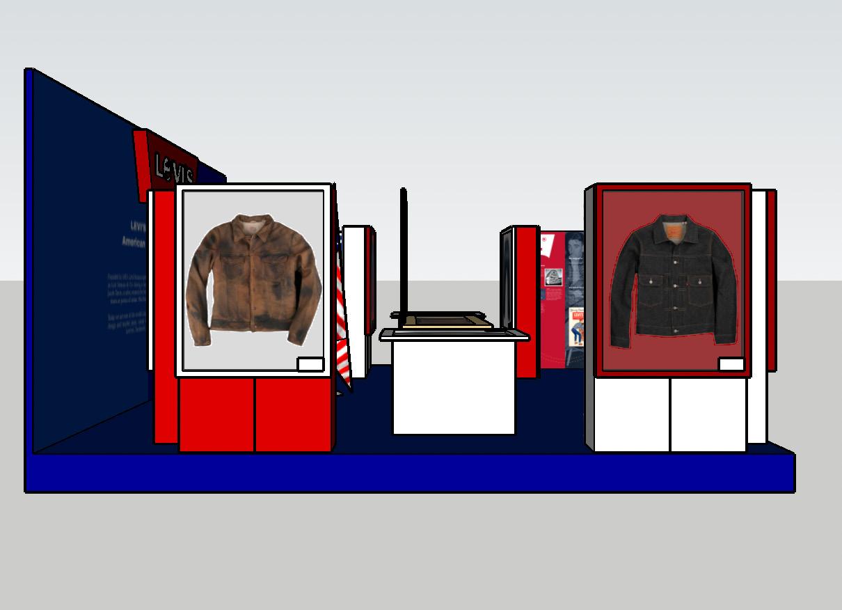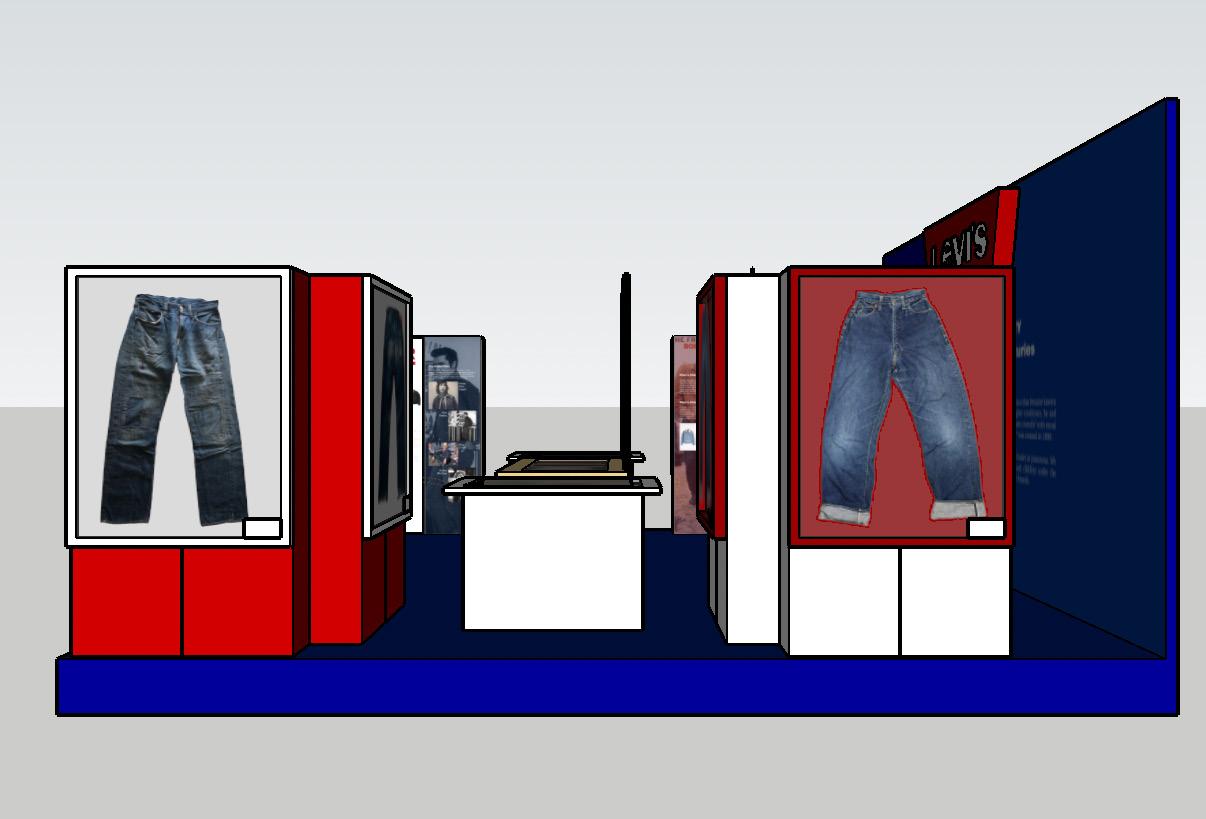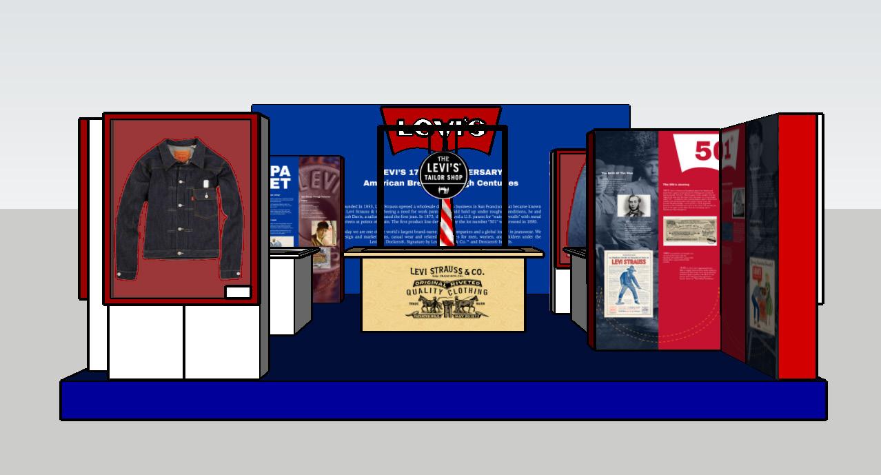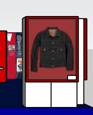 This pop-up exhibition is inspired of the Levi’s - The History of American Style exhibition, so I want to create a colorpop space in stead of rebuild a small Levi’s store. The classic red and classic blue are two signature Levi’s colors as well the US flag. All creates an American vibe. Levi’s is also known are archived items which still exist, and have been
