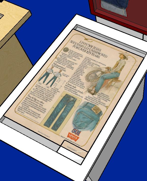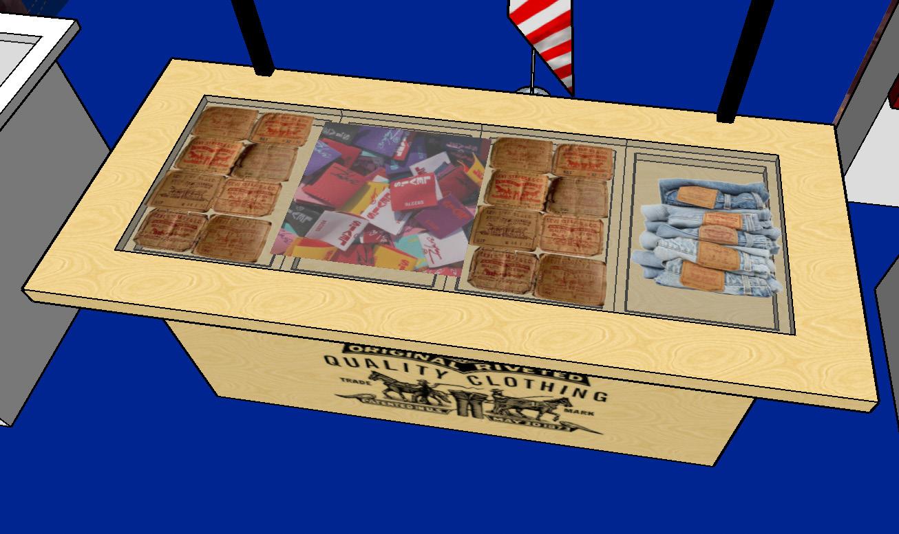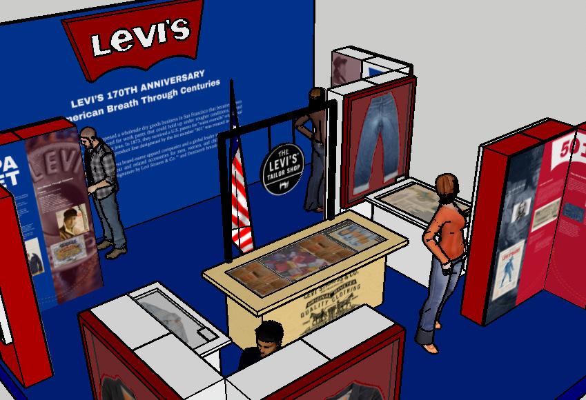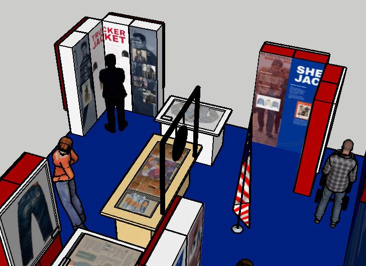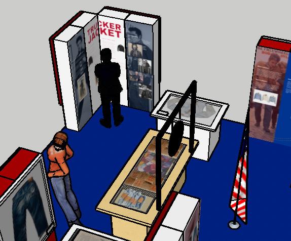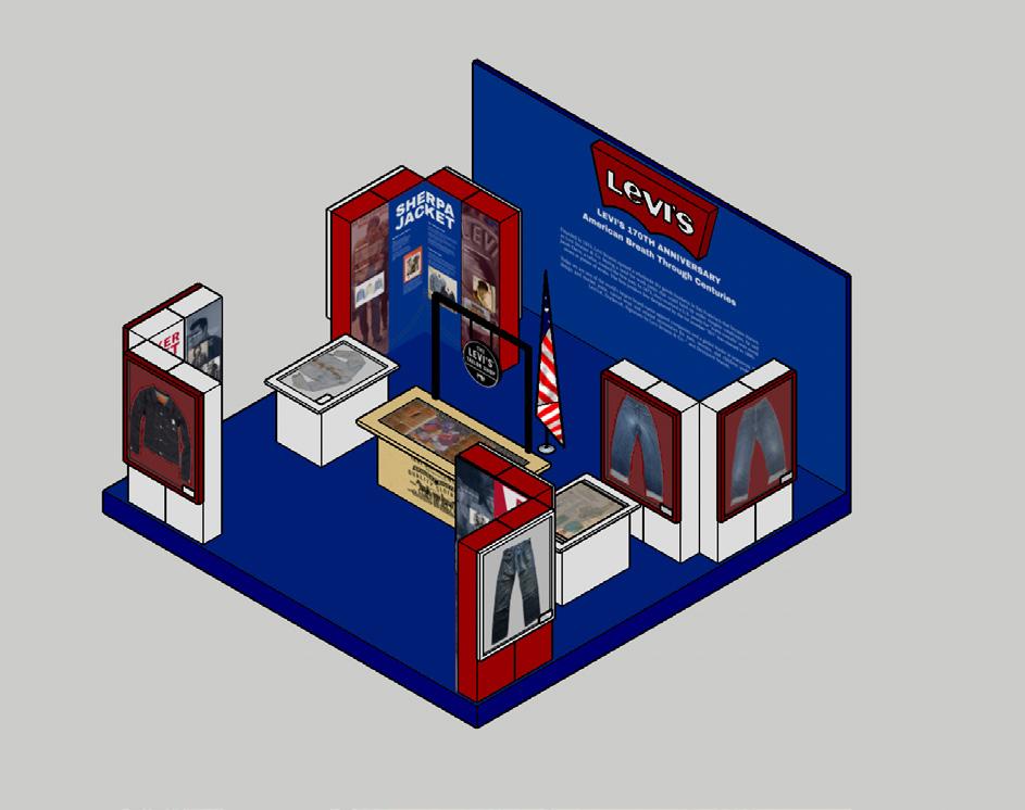 This pop-up exhibition is inspired of the Levi’s - The History of American Style exhibition, so I want to create a colorpop space in stead of rebuild a small Levi’s store. The classic red and classic blue are two signature Levi’s colors as well the US flag. All creates an American vibe. Levi’s is also known are archived items which still exist, and have been