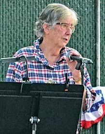 In row one, at left, community members take in the moment during the vigil; the event’s organizer, Frances Scarantino of Stars Community Center, left, watches on as Bianca Zelaya sings “God Bless America”; a woman lends a flame to another.