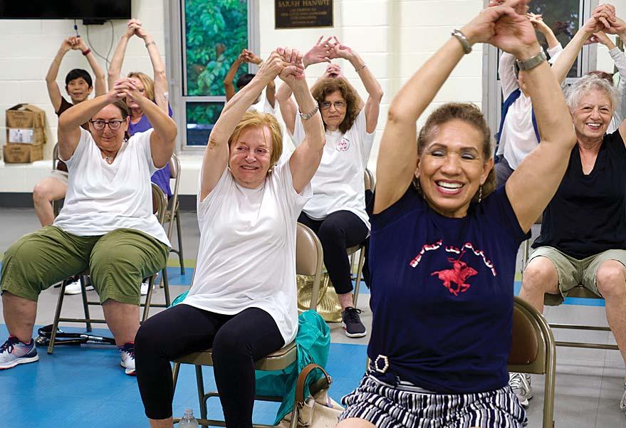 Commonpoint’s older adult centers offer a range of fun activities that help seniors stay sharp, social and active. Above, attendees of chair yoga at its Sam Field Center in Little Neck are all smiles as they get moving.