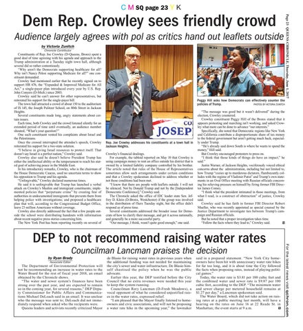 Dem Rep. Crowley sees friendly crowd