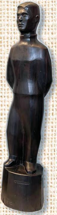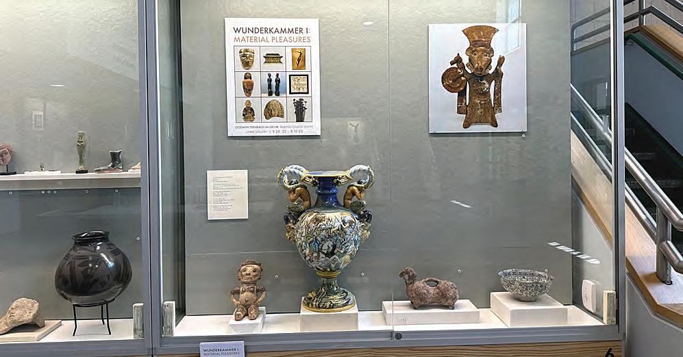 “Wunderkammer” artifacts are arrayed in display cases in the Godwin-Ternbach Museum’s lobby. On the cover: Among the items exhibited are pieces by unknown artists from ancient Egypt, medieval Italy and Momoyama-Period Japan and, top right, by Chaim Gross in 20th-century America.