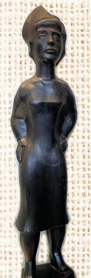 Other highlights include a marriage coffret from 14th-century Italy (donated by Ternbach in honor of Godwin), an Egyptian canopic jar with a painted face, which was used by ancient Egyptians to store and preserve organs during mummification, a Japanese figurine with a movable head from the Momoyama Period, original sculptures by artist Chaim Gross, a bundle of Kissi pennies from Africa and a sculpture made of real eggshells and lacquer on copper.