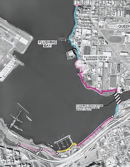 Navigable gates would be installed at the entrance to Jamaica Bay, and Hawtree and Shellbank basins in Howard Beach and where Flushing Creek lets out into Flushing Bay, among other locations. A series of levees, floodwalls and reinforced dunes would be built around the Rockaway Peninsula.