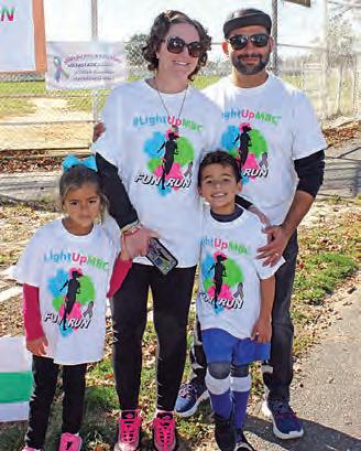Participants were doused in bright powders during the Miles for MBC and Kelly Color Run last weekend. Above left is Kelly Adams -Mahindra, who is raising money for metastatic breast cancer, with husband TJ and kids Vivienne and Leo. Above right is Isabella Taly, left, Mia Taly, Tara Adams Taly (Kelly’s sister and nieces) and volunteer Kathleen Greenberg.