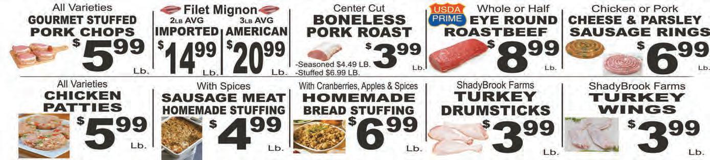 Stuffing .............................................Half $35.00 Lasagna ............................................Half $60.00