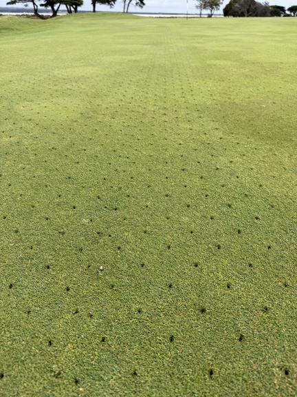 This week we had Adam from turfAir with his Air2g2 machin This machine is so beneficial to our greens. It has 3 prongs that 300mm into our soil that push air into the subsurface allowing for more water infiltration, promoting root depth and relievi compaction on our greens. This is a great mini renovation as leaves little to no disruption to the playing surface and can played instantly. We look forward to seeing the results as we c already feel the difference in the compaction levels when changi the holes