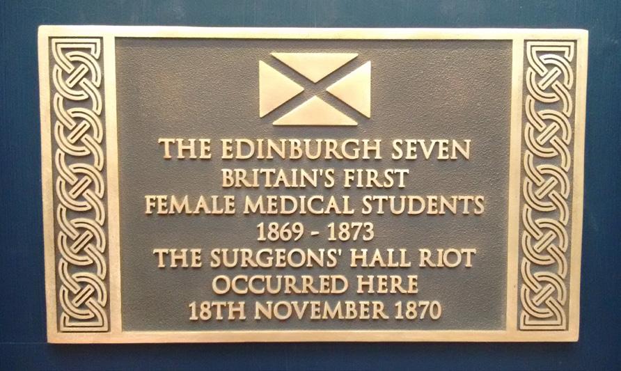 Plaque commemorating the ‘Edinburgh Seven’ at the site of the ‘Surgeons’ Hall Riot’ of 1870.