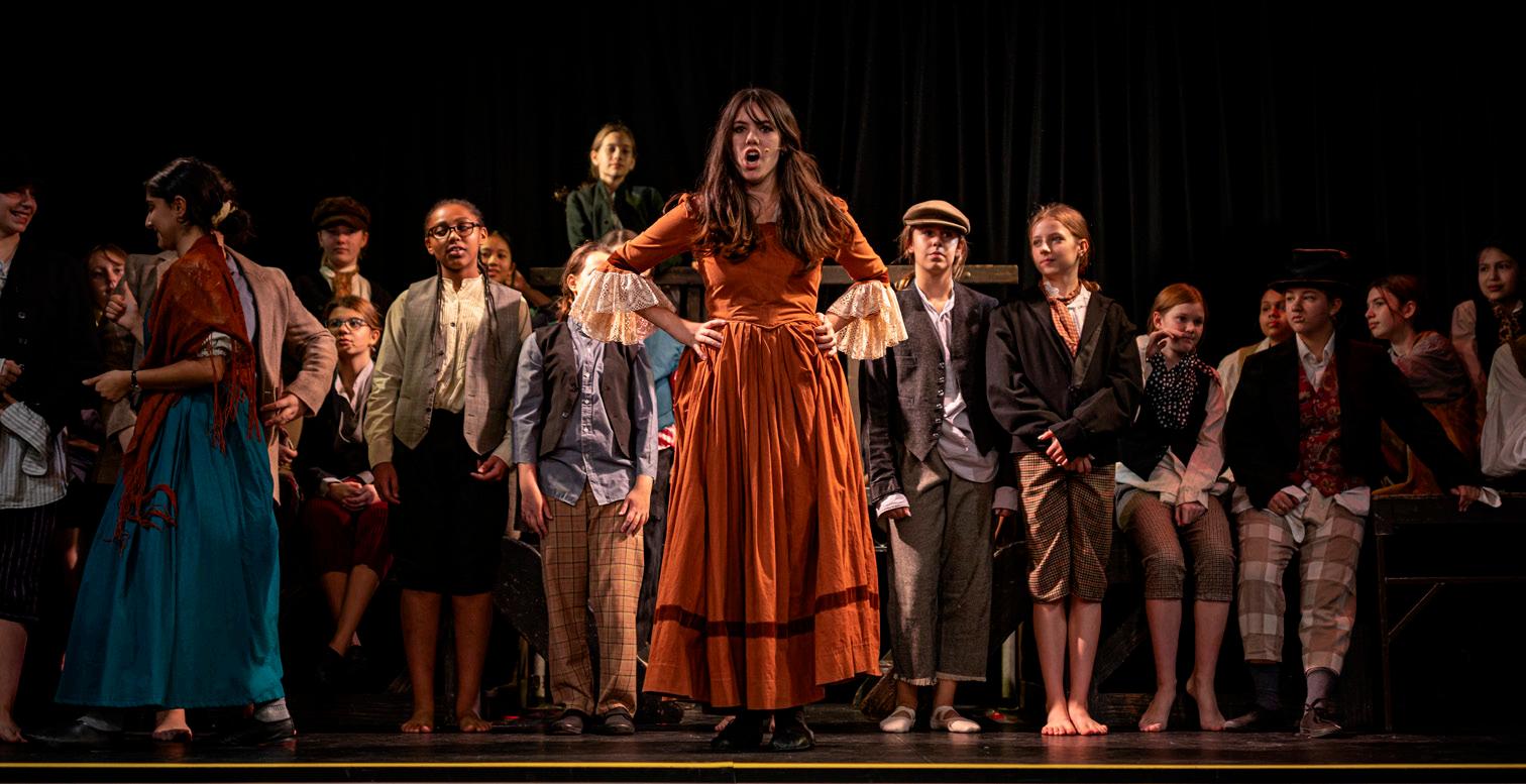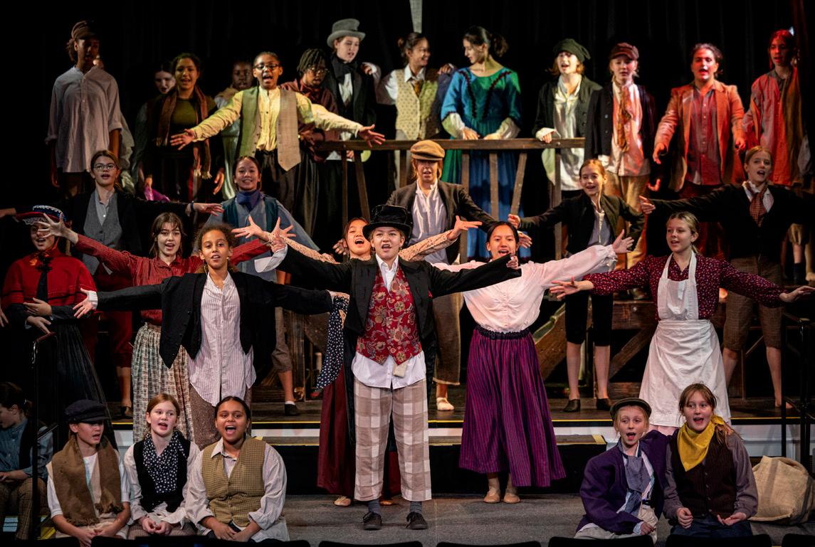 Queen’s puts on a musical every two years and this year’s ‘Oliver!’ was one of the few school shows anywhere in the UK last autumn. The two years since 2020’s ‘Beauty and the Beast’ have put many constraints on rehearsing a musical. Firstly, the rehearsal period had to be intense to avoid Covid disrupting the performances and even then, two year groups had to rehearse separately during an outbreak. All seven year groups at the College were involved, meaning auditions and casting for Class 3 took place while they were still at primary school. Even the auditions took place remotely. But the show went on! Speaking to audience members each night, there was a sense of relief, joy even, at just being able to watch live acting and to listen to live music again, to be able to celebrate the talent of young people and witness the community spirit of Queen’s in person. It was a truly uplifting experience for so many of us involved; a sign maybe that we can feel we may actually be on our way back to some sort of normality.
