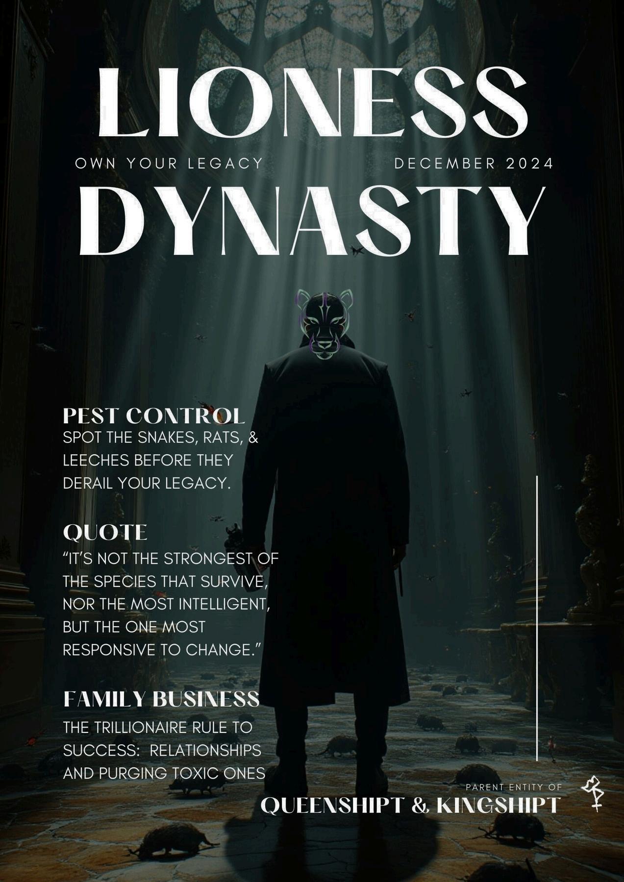 Lioness Dynasty Magazine is the premier publication dedicated to visionary leadership, self-sovereignty, and legacy-building. As the official magazine of the Lioness Dynasty brand, it bridges the transformative journeys of Queenshipt (personal growth and leadership) and Kingshipt (community, culture, and strategy), offering readers a powerful blueprint for empowerment, financial independence, and strategic dynasty-building.