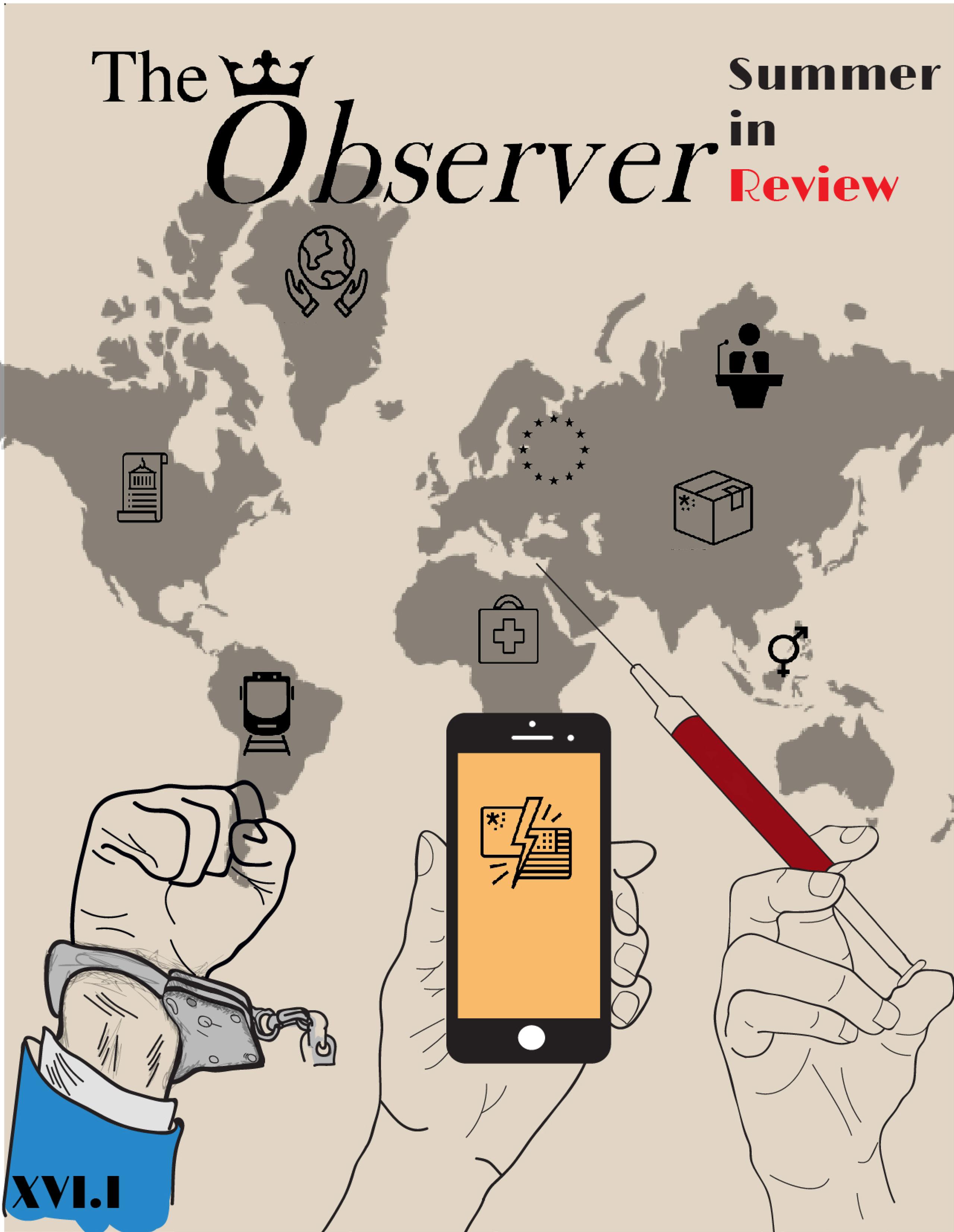 A sincere welcome to Volume XVI.I of the Observer and to the annual installment of our Summer-in-Review issue! This year, we have a strong diversity of issues being covered. The field of international relations is multifaceted and growing faster than ever, and therefore the work of our writers encompass many of the different conflicts, issues and ideas that we face in today’s fast-paced and increasingly globalized world. As you flip through the pages of this issue, you will read about topics ranging from identity, intrastate and interstate conflict, to topics exploring social issues and human rights, public health, technology, art and fashion.