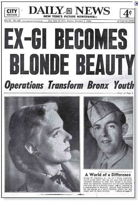 It is December 1, 1952. e elegant, angular visage of a woman, sharply dressed, her long blonde hair coiled neatly into a bun at the nape of her neck, is plastered on the front page of the New York Daily News. She shares the spotlight with a second photo, to her immediate left, of a uniformed soldier with a garrison cap perched on his head. e title emblazoned above reads: “Ex-GI Becomes Blonde Beauty.”