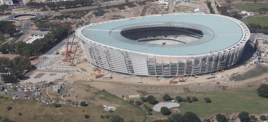 Construction on the 2010 World Cup Stadium in Cape Town, South Africa.