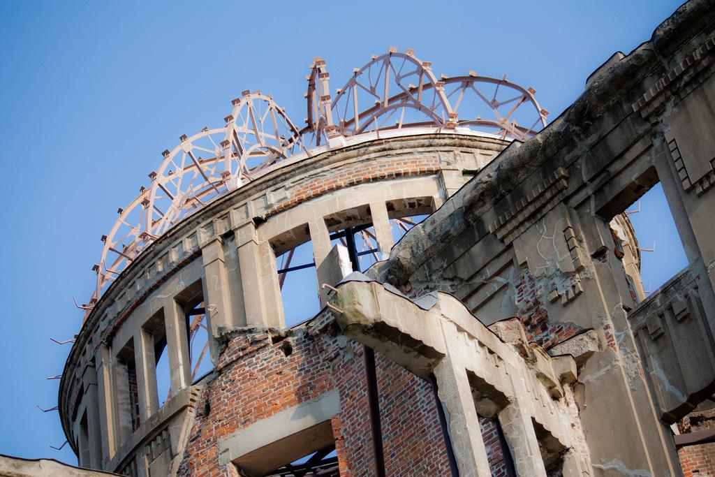 e A-bomb Dome in Hiroshima stands as a memorial to the nuclear devastation sustained by the dropping of the atomic bomb in August of 1945. e dome is a testament to and reminder of the power of nuclear weapons.