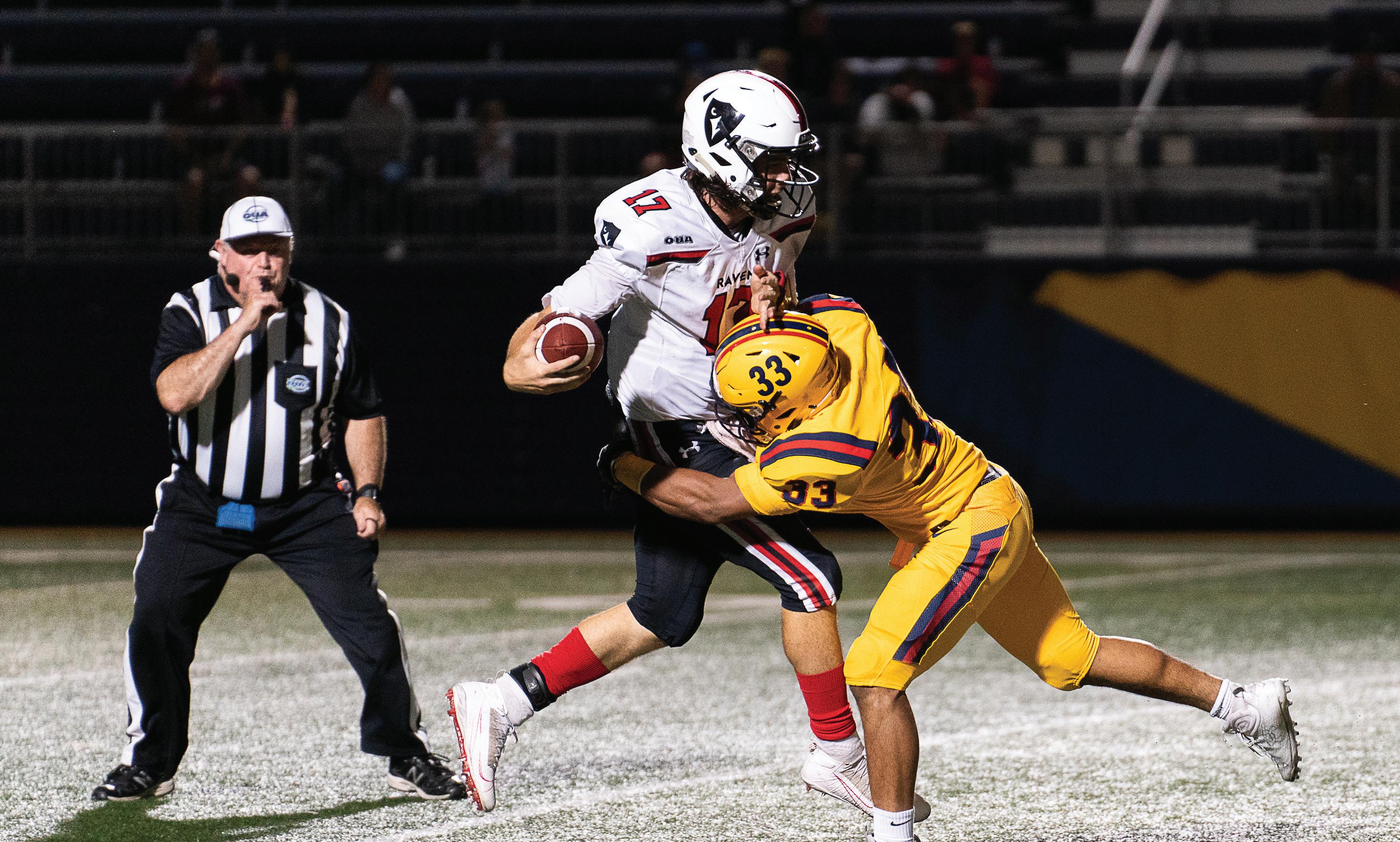 Sterling Seunarine sacks Ravens quarterback Tanner DeJong during the fourth quarter.