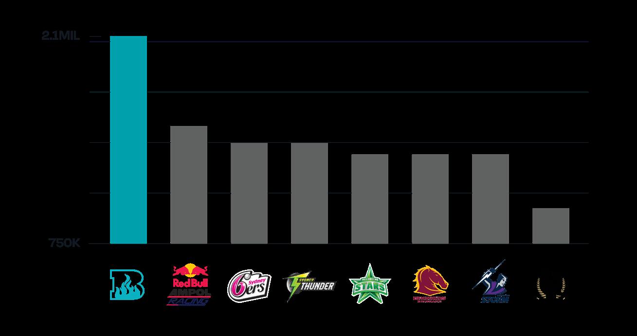 • The Brisbane Heat Men’s team was the 5th most watched Australian team in cumulative TV hours viewed (2022-23)