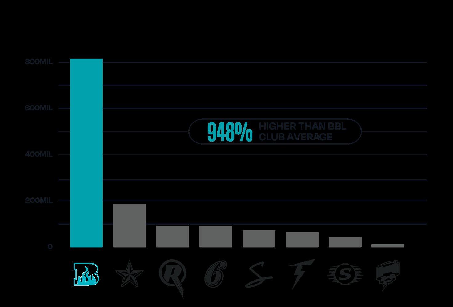 • 821 million video views over last 6 years (948% higher than other BBL club average)
