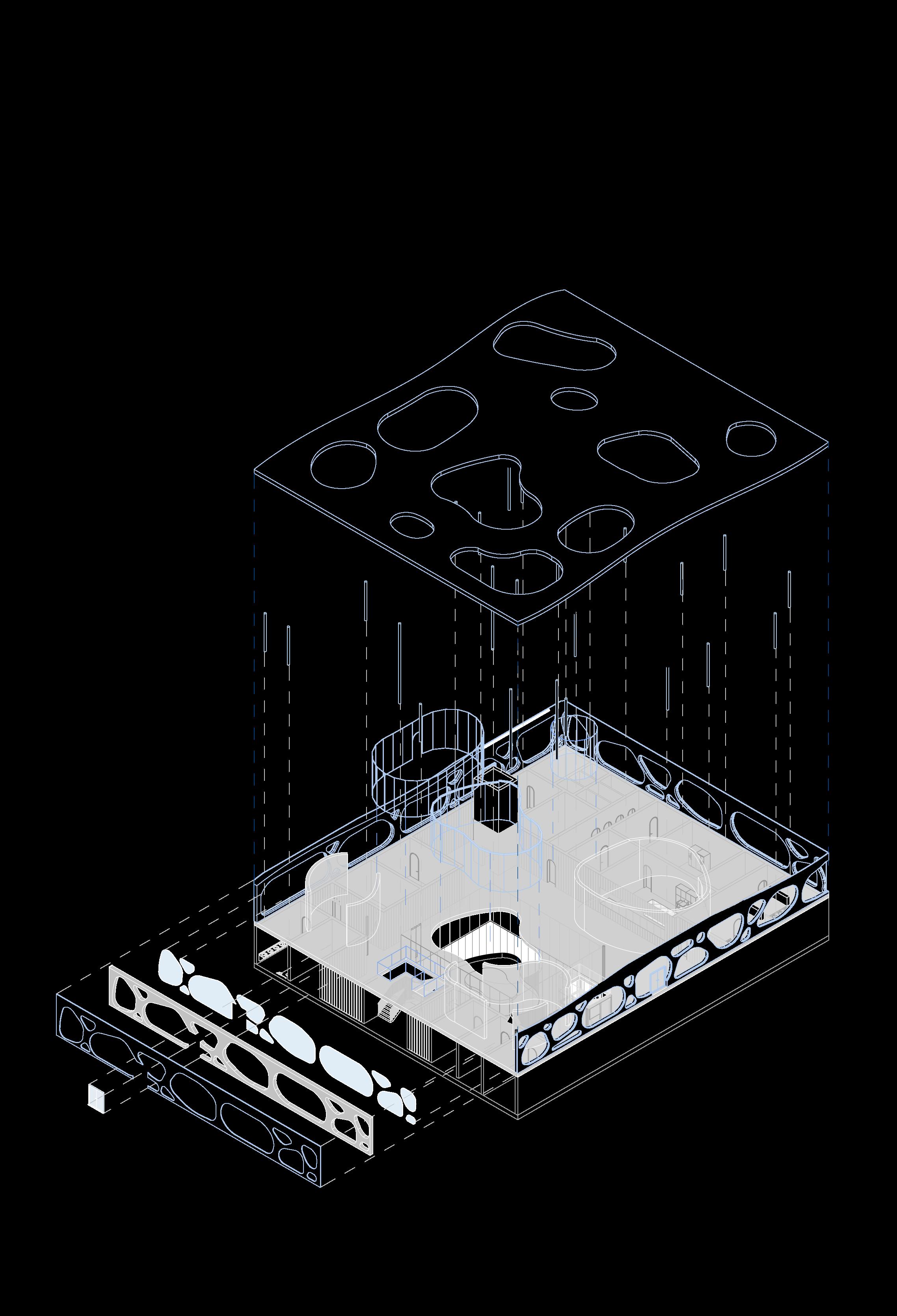 Inspired by the term “school of fish,” the design aims to gather and inspire large groups of people within a space that engages all the senses, fostering a strong sense of community both within the building and across the surrounding landscape.