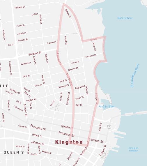 Head towards the water on Brock and turn left onto Wellington. Wellington will take you out of downtown and past the Marina to a small park by the water. You’ll see the K and P trail pick up here. Get on the trail and enjoy the beautiful views of the water to your right. There’s also a pretty neat street art exhibit to your left. The trail will take you past the old Woolen Mill, built in 1882. Past the Kingston Rowing Club, the trail turns left onto River Street, then about 100 m later takes a right before it reaches Rideau Street (Note: this path is not accessible for wheels in the winter. For an alternative route take Rideau until it meets Montreal). Travelling parallel to Rideau, the trail pops out again where Rideau meets Montreal. Take a sharp left onto Montreal and follow Montreal back downtown (for a longer run, take a right where the trail heads toward the road and head through the golf course towards Belle Island. I’d recommend doing this with a buddy, as it’s easy to take a wrong turn). ⚚