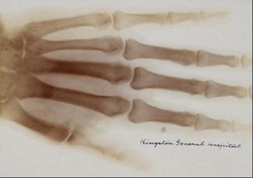 Fig. 3—Hand radiograph of Victorian singer Madame Emma Albani taken at the Royal Military College in Kingston, Ontario, on February 17th, 1896, courtesy of the Museum of Health Care in Kingston – item accession number 997029001 a-b, under ‘Archival Radiology’. https://mhc.andornot.net/en/permalink/artifact1019